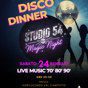✨ Vieni a vivere una serata unica in Agrilocanda Val Campotto ✨ 📅 Sabato 24 gennaio arriva la Disco Dinner in Hangar, una notte speciale ispirata alla discoteca simbolo degli anni ’70, ’80 e ’90: lo Studio 54! Un vero e proprio viaggio nel tempo, tra musica, luci e atmosfera iconica. 🍽️ Cena avvolta dalle […]